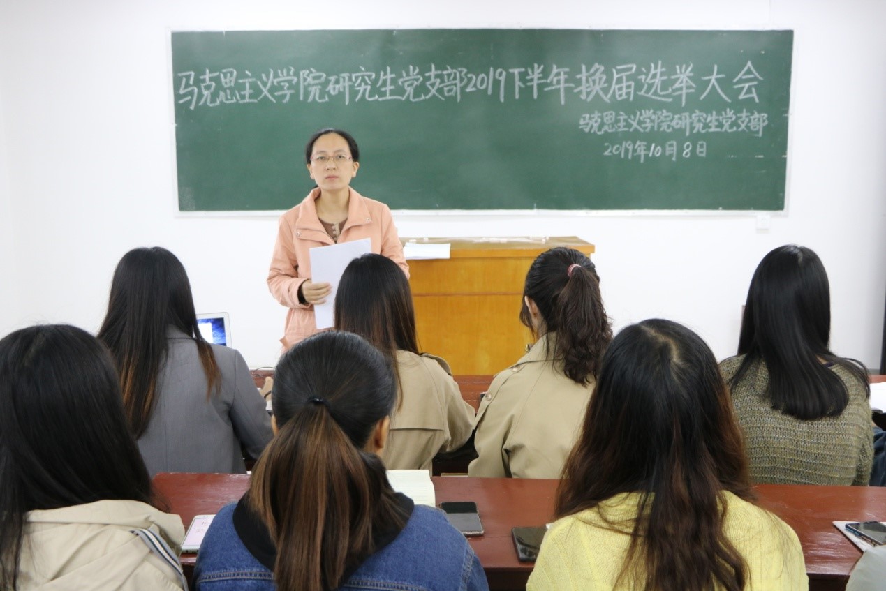 10月8日下午,beat365研究生党支部换届选举大会在教五楼203教室举行。全体支部党员参加本次会议,支部书记卢云晓主持会议。