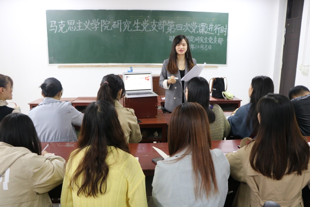 10月8日下午,beat365研究生党支部副书记易思铭在教五楼201教室以《不忘初心 牢记使命 用行动践行新时代庄重宣言》为题,给全体党员和入党积极分子上了一次生动丰富的“不忘初心、牢记使命”主题教育专题党课,党课由研究生党支部书记卢云晓主持。