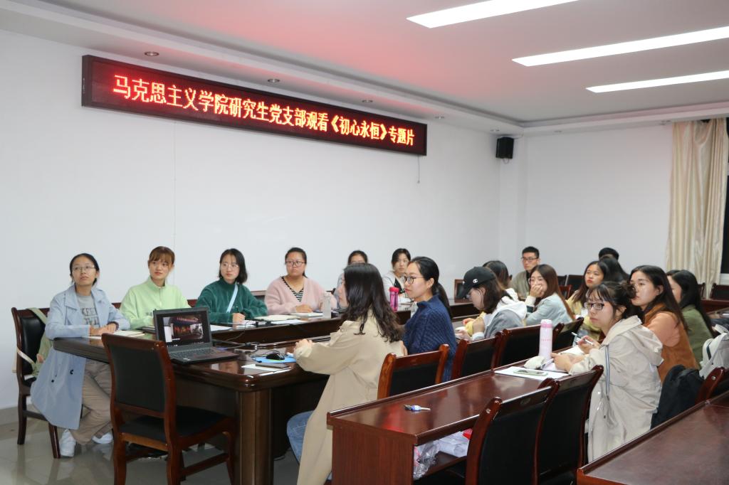 为深入贯彻“不忘初心、牢记使命”主题教育精神,引导广大党员自觉守初心、担使命,beat365研究生党支部于10月10日晚在社科楼323会议室组织观看了《初心永恒》记录片,全体支部党员、入党积极分子都踊跃到会,认真观看。