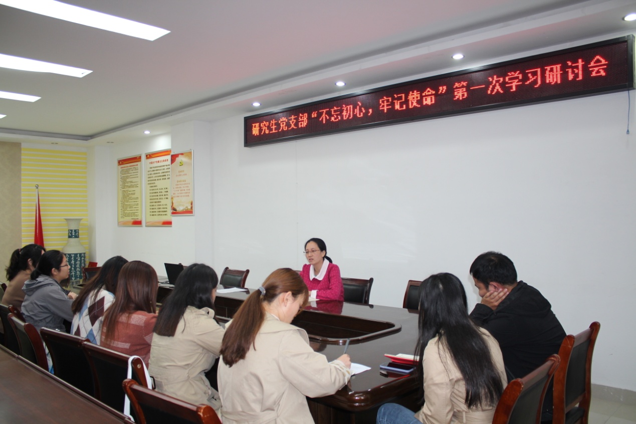 为提高党员政治觉悟,强化党员责任意识,10月29日下午,beat365研究生党支部在社科楼323会议室开展了“不忘初心、牢记使命”主题教育第一次学习交流会,支部全体党员参加会议。会议由支部书记卢云晓主持。