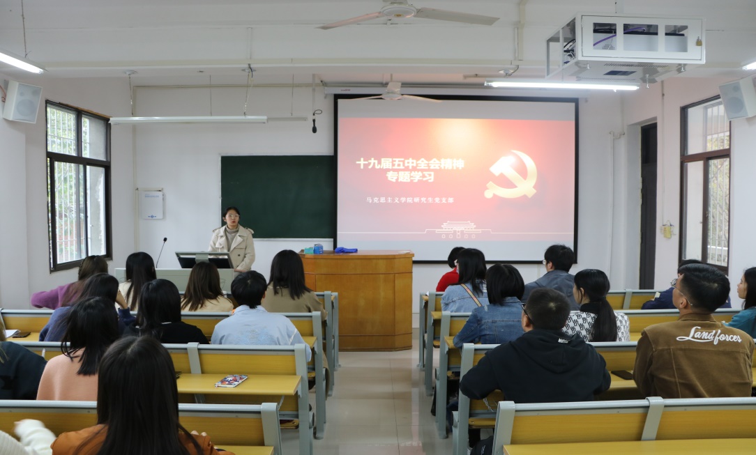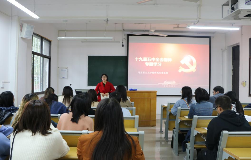 为深入贯彻落实党的十九届五中全会精神,提升党支部的政治理论学习能力,11月16日下午,beat365研究生党支部于教五楼203教室举行了十九届五中全会精神专题学习活动,支部党员积极参加。