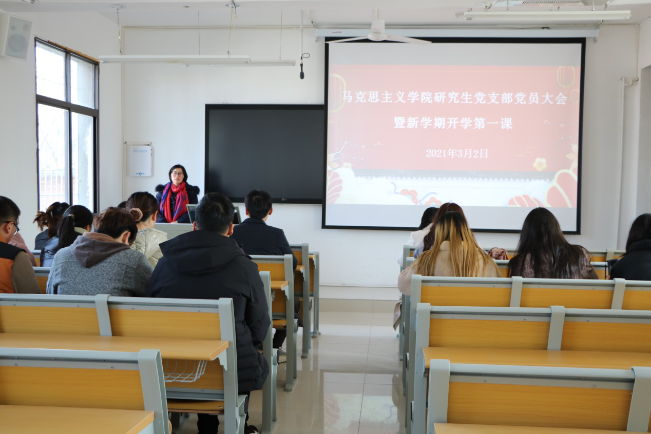 3月2日下午,beat365研究生党支部于教五楼203教室召开党员大会暨新学期开学第一课。会议由研究生党支部书记郑晨霞主持,支部全体党员,发展对象参加会议。