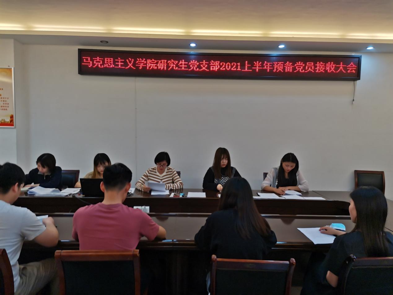 会议伊始,组织委员高松垚向大家介绍本次会议流程,并宣布到会情况:大会有表决权的正式党员17名,应到会17名,实到会17名,预备党员8名,应到4名,请假4名,有表决权正式党员实到会人数超过应到会人员一半,符合有关规定,可以开会。随后,组织委员高松垚宣布发展名单。按照逐个讨论逐个表决的原则,文浩、周忠鑫、曲直、龚忍慧、詹彦彦五位同志分别宣读《入党志愿书》,汇报自己对党的认识、入党动机、本人履历、家庭和主要社会关系情况。五位同志的入党介绍人分别就发展对象在校期间的有关考察情况作总结发言。接着,郑晨霞向大会报告发展对象的审查情况,与会党员结合五位同志的思想汇报和入党申请书及其平时的了解充分发表意见。最后,党支部正式党员以无记名投票方式进行表决,一致同意接收文浩、周忠鑫、曲直、龚忍慧、詹彦彦共五位同志为中共预备党员。