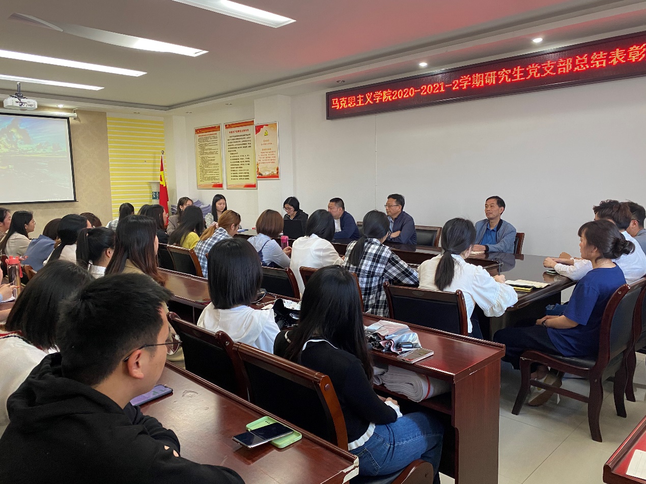 5月18日下午,beat365研究生党支部2020-2021-2学期总结表彰大会在社科楼323会议室举办。唐国战书记、黄世明副院长、何晓坚副书记和全体研究生参加了此次会议,会议由支部书记郑晨霞老师主持。