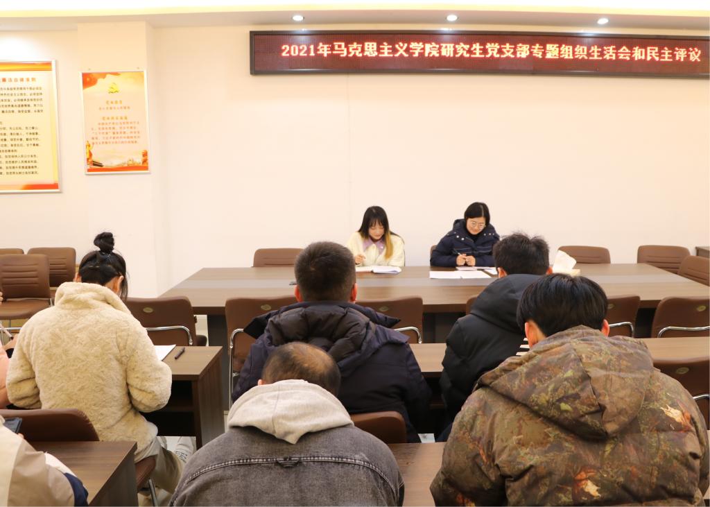 12月20日下午,beat365研究生党支部在社科楼323会议室召开2021年度专题组织生活会和民主评议会,会议由支部书记郑晨霞主持。