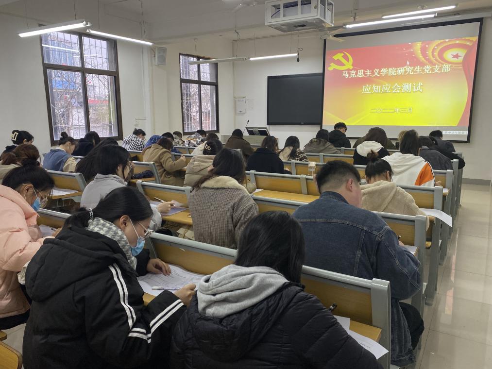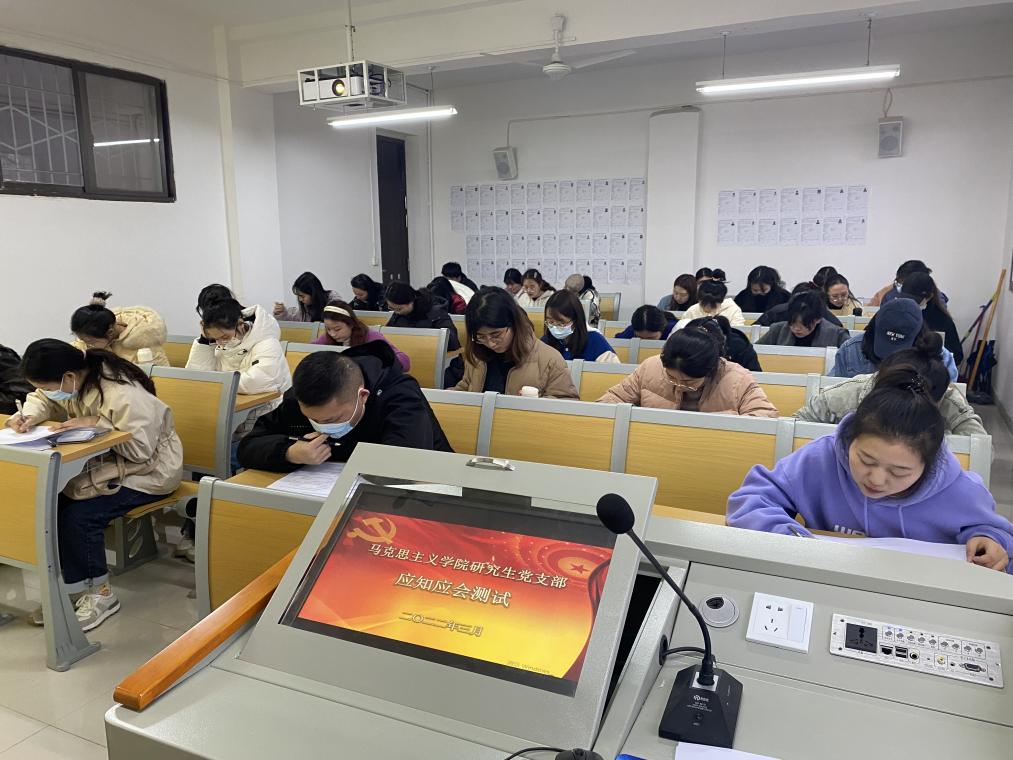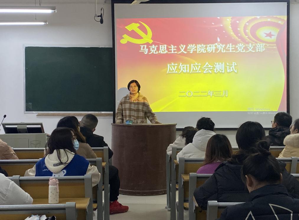 为推进“两学一做”学习教育常态化、制度化,引导基层党组织和广大学生党员、预备党员、入党积极分子进一步统一思想、凝聚共识、营造深入学习贯彻习近平新时代中国特色社会主义思想的浓厚氛围,3月17日下午,beat365研究生党支部组织支部党员、预备党员、入党积极分子于教学楼5楼201、203教室开展了党员应知应会知识竞赛党日活动。活动由支部书记郑晨霞主持。
