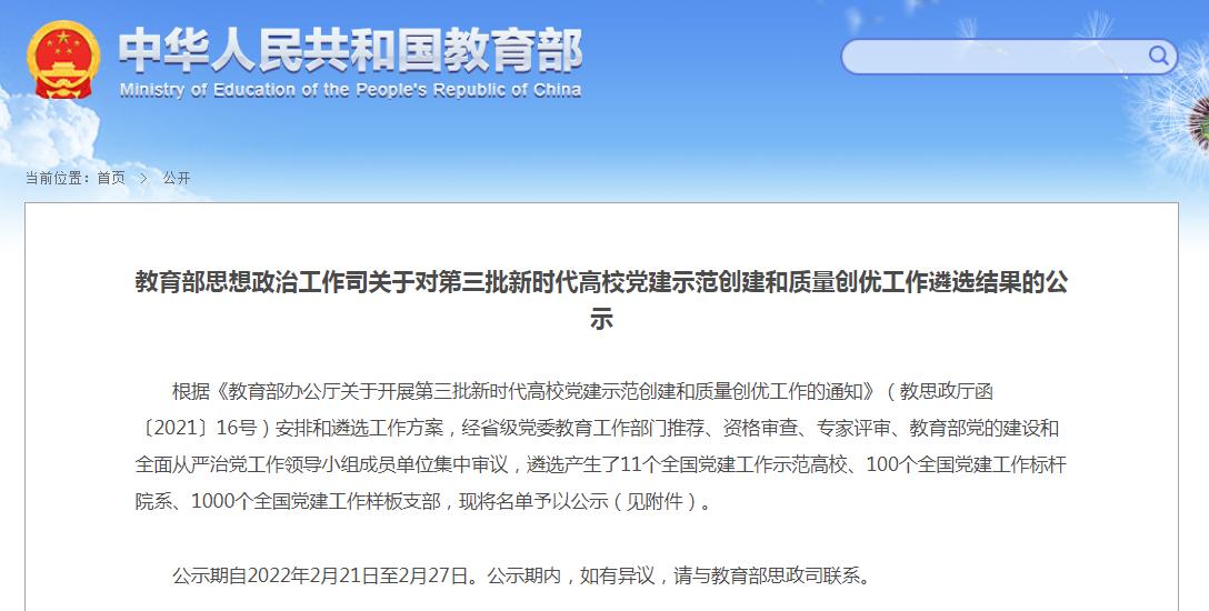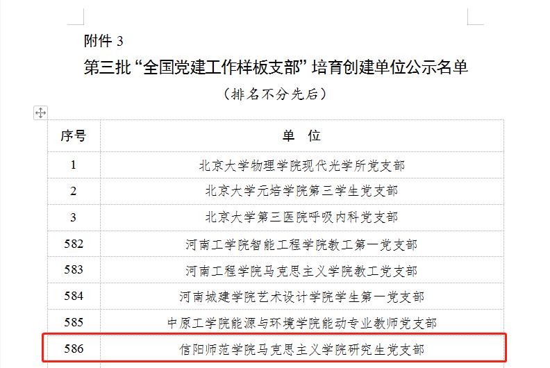 近日,根据《教育部思想政治工作司关于对第三批新时代高校党建示范创建和质量创优工作遴选结果的公示》,我校beat365在线唯一官网研究生党支部获批 “第三批全国党建工作样板支部”培育创建单位。