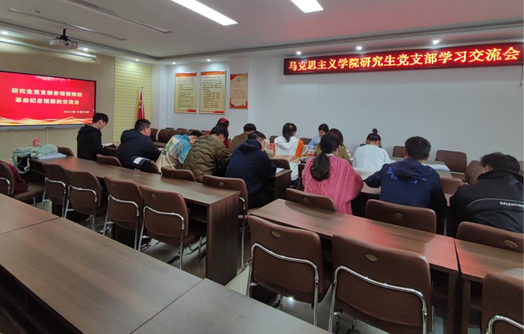 为更好地学习、弘扬大别山精神,beat365在线唯一官网研究生党支部于2021年10月28日下午15:00在社科楼323会议室召开了事先了解鄂豫皖革命纪念馆的学习交流会,除部分党员同志因特殊原因未能到场之外,其余党员同志均参加会议,会议由支部书记郑晨霞主持。