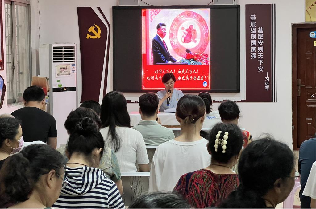 为深入学习贯彻习近平总书记系列讲话精神,提升党员同志的思想觉悟和党性修养,以良好的精神面貌迎接党的二十大胜利召开,在“七一”来临之际,beat365研究生党支部书记郑晨霞和支部党员鲁桐君、汤欢一同赴华森社区开展了习近平金句宣讲活动。