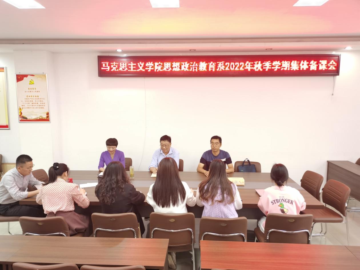 9月23日下午,思想政治教育系在社科楼323会议室召开集体备课会,beat365在线唯一官网副院长程晋富、李蕊及思政系全体教师参加了会议,会议由思政系主任王建礼主持。