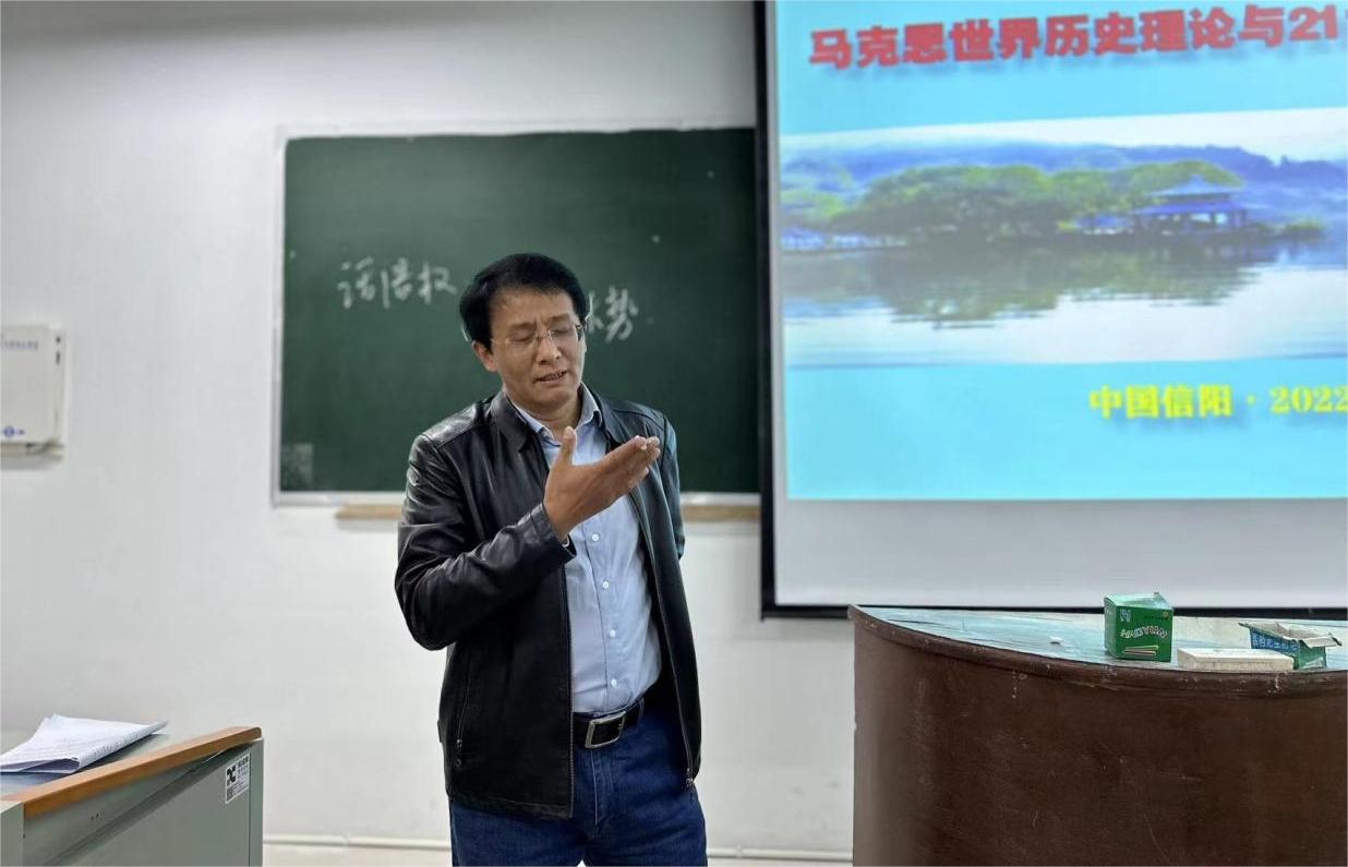 11月15日,应beat365在线唯一官网邀请,陈雷博士在教五楼201教室为我院研究生作了题为“马克思世界历史理论与21世纪经济全球化问题”的专题讲座。beat365在线唯一官网部分教师和全体研究生以集中或线上的分散形式聆听了此次讲座。讲座由beat365在线唯一官网研究生班主任周钰婷主持。