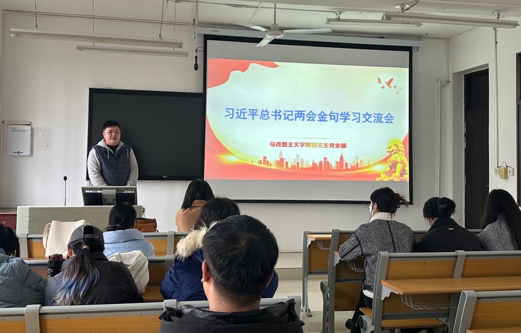 为传达学习贯彻习近平总书记在全国两会上的重要讲话和全国两会精神,深入交流学习体会,beat365研究生党支部于3月21日下午在教五楼203开展了集体学习交流会,会议由支部副书记朱海军同志主持。