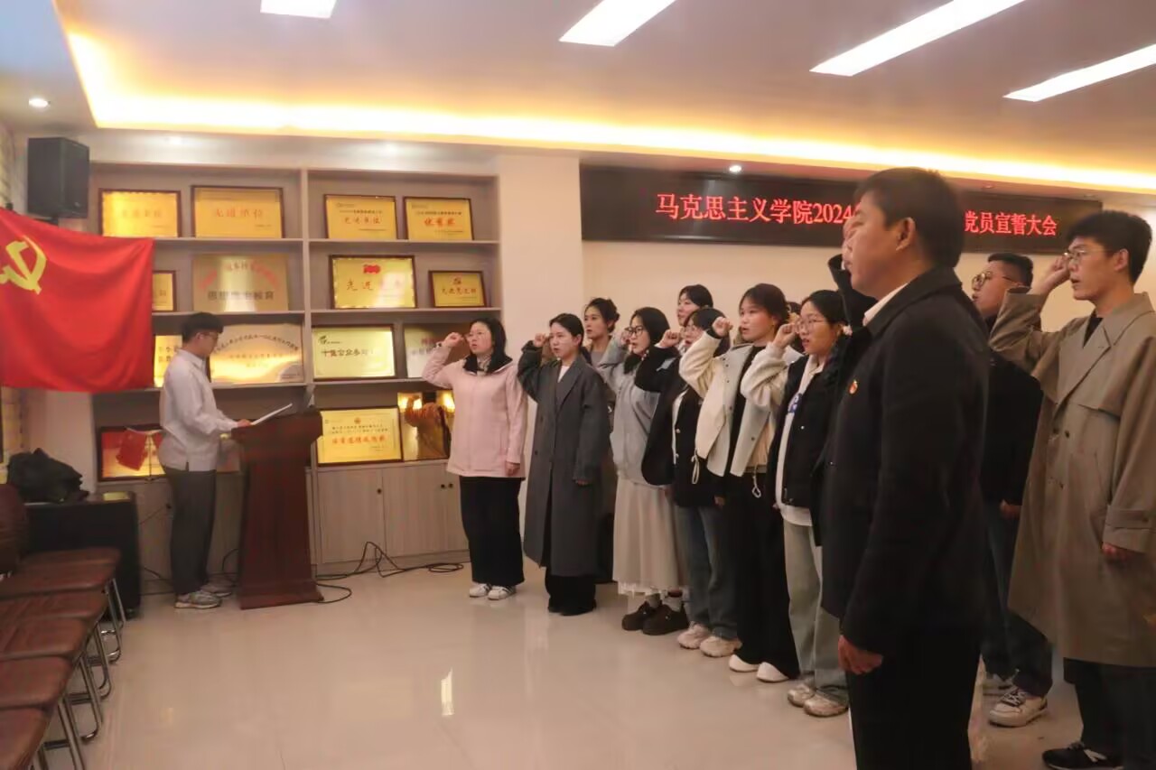为加强新发展党员的党员意识,提升党性修养,3月31日下午,beat365在线唯一官网于社科楼323教室召开2024年下半年预备党员宣誓大会。beat365党委副书记王超、金天同志、部分党员以及全体预备党员共同参与本次会议。会议由李岩松主持进行。