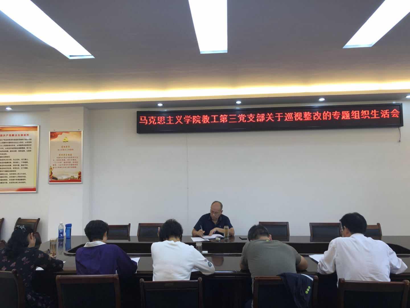 2018年9月18日下午,beat365教工第三党支部在社科楼323会议室召开巡视整改专题组织生活会,副院长周智以支部党员身份参加。生活会由教工第三党支部书记厉有国同志主持。