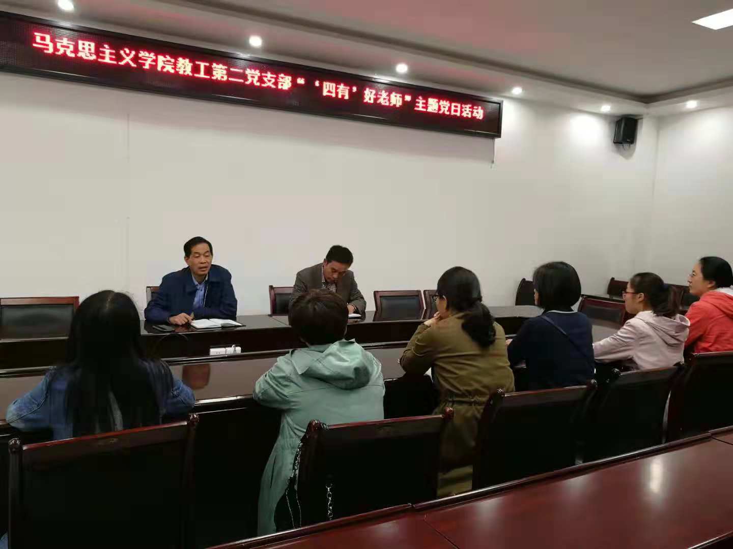 为提高教师党员的党性修养,学习践行习近平总书记提出的做有理想信念、有道德情操、有扎实学识、有仁爱之心的“‘四有’好老师”的指示精神,10月25日下午,beat365教工第二党支部在323会议室召开了“‘四有’好老师”主题党日活动会议。会议由代理党支部书记黄世明副院长主持。