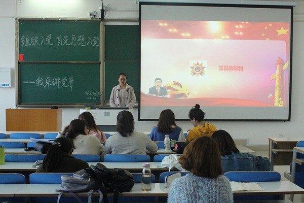 为引导党员发展对象学习党章、尊崇党章和践行党章,牢固树立党章意识,进一步做到思想入党,积极营造“人人学习党章、人人尊崇党章”的良好氛围,4月8日下午,beat365第29期党员发展对象在社科楼515教室开展了“组织入党 首先思想入党--我要讲党章”活动。活动由本期党员发展对象组长徐豫资主持。