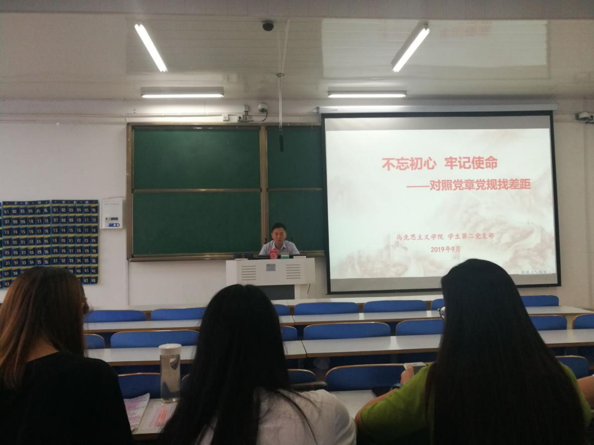 2019年9月24日下午,beat365在线唯一官网学生第二党支部在社科楼516开展“不忘初心,牢记使命—对照党章党规找差距”主题党日活动。学生第二党支部书记曹栋、支部党员参加此次活动。会议由支部书记动曹栋主持。
