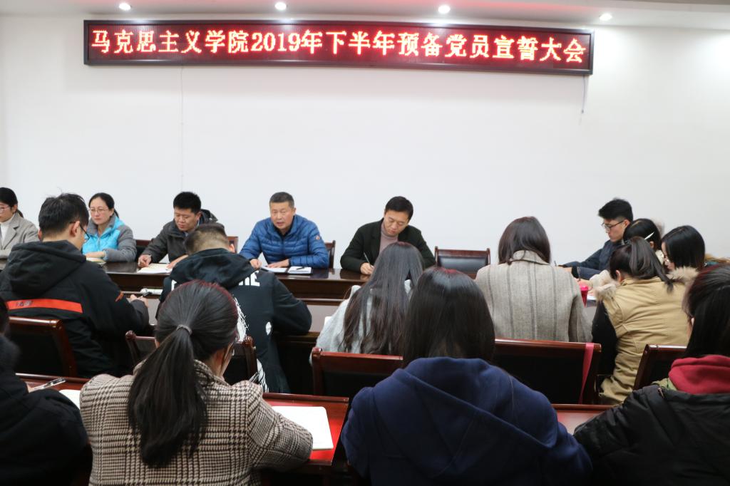 12月5日下午,beat365在线唯一官网在社科楼323会议室召开2019年下半年预备党员宣誓大会。学院党委副书记徐永新和专职组织员、学生党支部书记、全体学生党员和师生预备党员共同参加。大会由团委副书记肖妍杰主持。
