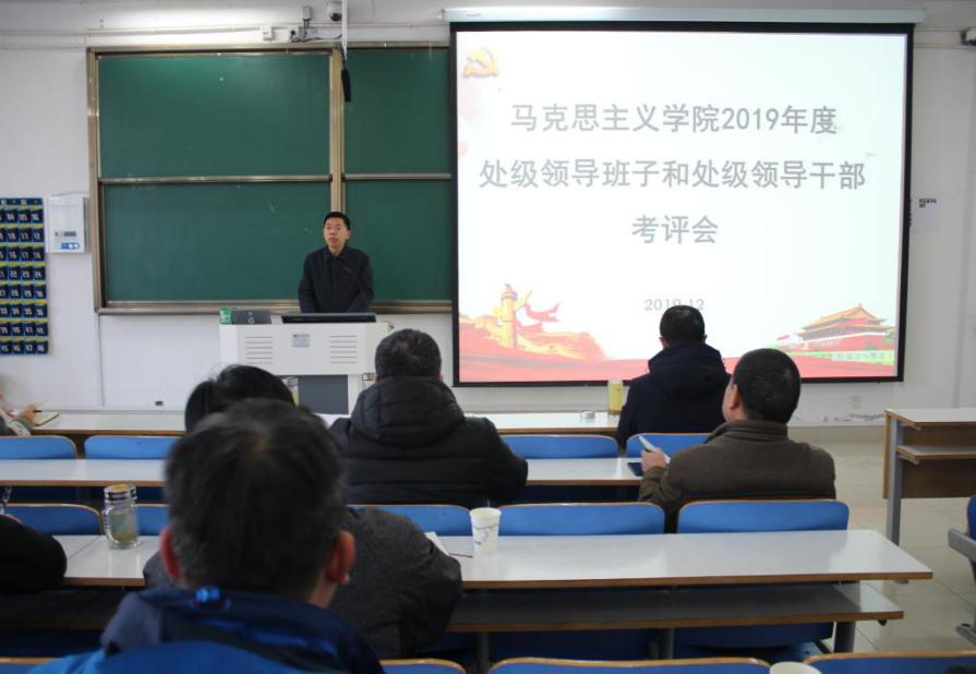 林兴岚传达了相关考核要求,一是讲政治,讲正气。二是要在思想上高度重视,对学院处级领导班子和处级领导干部进行客观评价,并就考核流程做了详细介绍。随后,beat365在线唯一官网党委书记唐国战代表学院党委班子和个人进行了工作汇报。他介绍了beat365深入开展巡视整改、“不忘初心、牢记使命”主题教育活动开展情况,从政治建设、思想建设、组织建设、党风廉政建设等几个方面阐述了学院党建工作及成效。院长杨云善作为学院行政负责人,从教学科研、学科建设、师资队伍、重点马院建设等几个方面介绍了一年来beat365在线唯一官网事业发展取得的成绩。并表示今后要立足岗位,努力工作,为学校、学院及师生办好事、办实事。