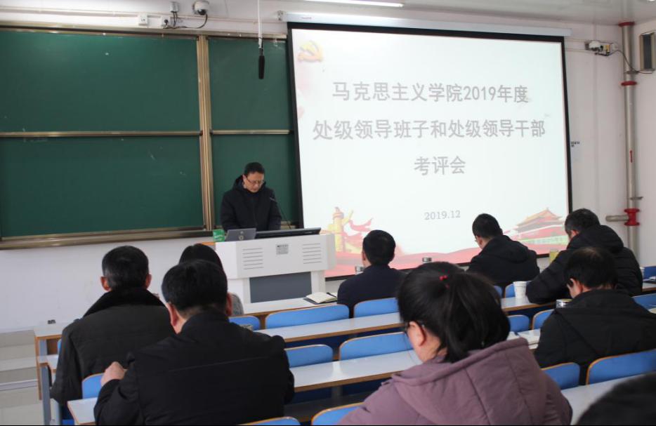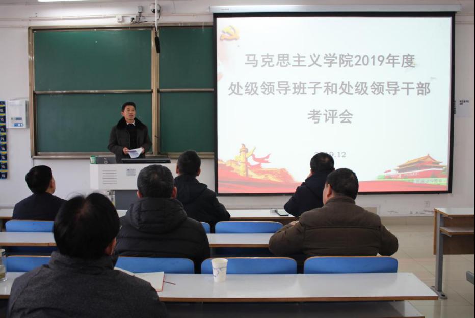 12月26日下午,beat365在线唯一官网在社科楼516教室举行了2019年度处级领导班子和处级领导干部考评会。信阳师范学院处级领导班子和处级领导干部2019年度考核工作领导小组第三考核组组长林兴岚及考核组成员汪霞、李奎参加会议。会议由学院党委书记唐国战主持。