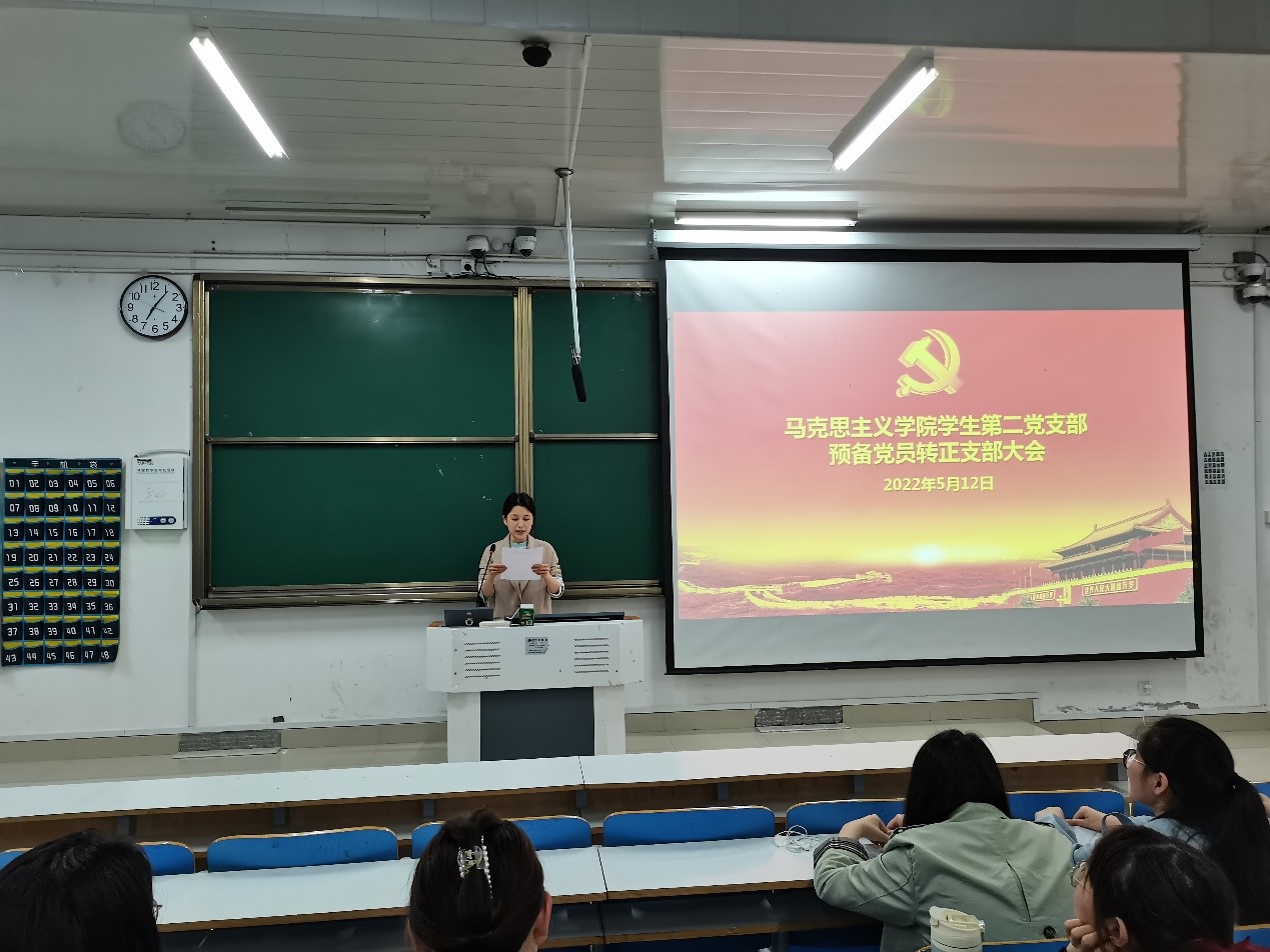 5月12日下午,beat365在线唯一官网2022年上半年学生第二党支部预备党员转正支部大会在社科楼516教室召开。beat365学生第二党支部支部正式党员曹栋、任婷、杨康、王文慧、黄子晋、张甜甜、贾思琦、耿晗、李静、席妞,学生第二党支部预备党员共同参加本次会议。会议由王文慧主持。