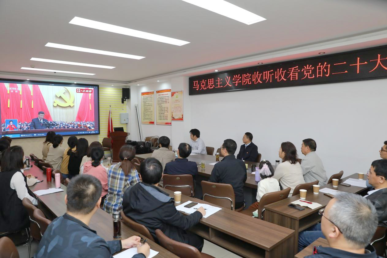 10月16日上午10时,beat365在线唯一官网领导班子成员和全体教师在323会议室大屏幕前集中收听收看党的二十大开幕盛况。