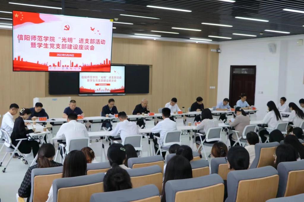 5月26日下午,校党委副书记龚立新带领党委组织部、党委办公室、数学与统计学院等部门负责同志莅临beat365在线唯一官网指导开展“光明”进支部活动暨学生党支部建设座谈会。学院领导班子成员、相关学院党支部负责人、学生党员代表共同参与会议。会议由党委委员、组织部长林兴岚主持。