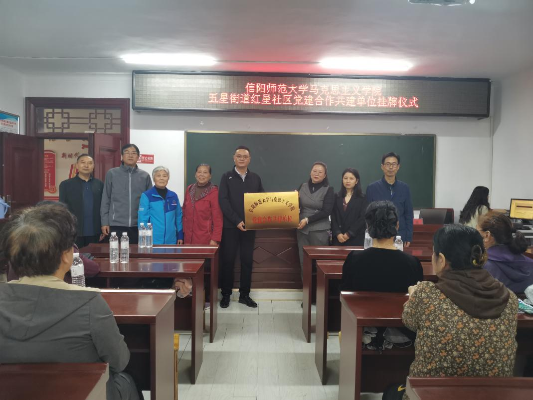 10月10日上午,beat365在线唯一官网党委副书记黄煌、副院长周智、思政课教师刘征、专职组织员任婷一行前往信阳市五星街道红星社区开展党建共建交流座谈会。信阳市红星社区党委书记、居委会主任刘娟,红星社区党委委员、组织委员、纪检委员赵建富参加了本次座谈会。会议由刘娟主持。