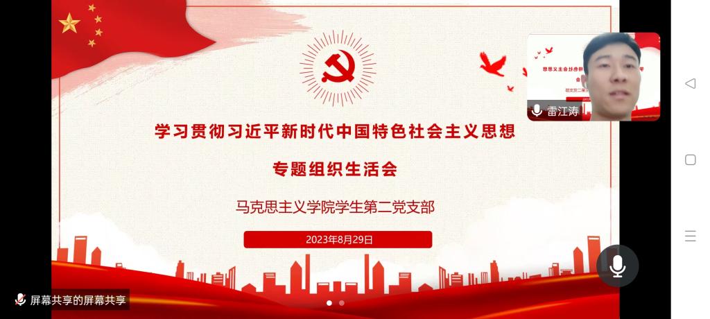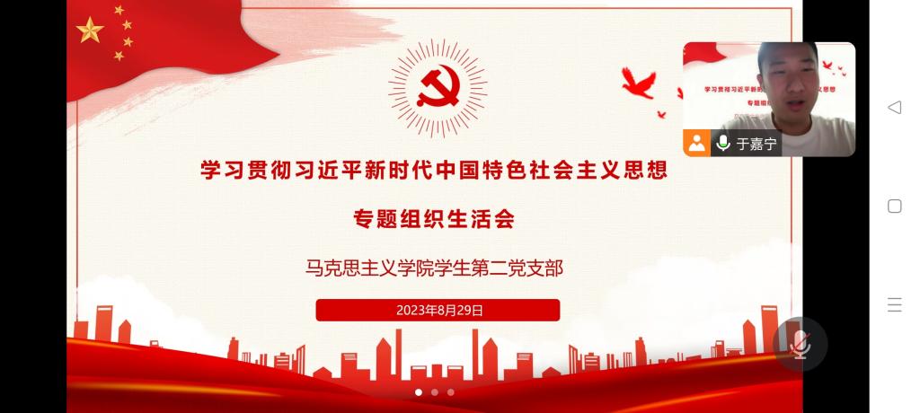 为积极贯彻落实校党委关于开展学习习近平新时代中国特色社会主义思想专题组织生活会的通知要求,8月29日晚上,beat365在线唯一官网学生第二党支部结合实际情况,通过腾讯会议召开学习贯彻习近平新时代中国特色社会主义思想专题组织生活会。学生第二党支部全体党员、预备党员参加会议,学生第一党支部书记高小佳同志参会并指导会议。会议由组织委员于嘉宁同志主持。