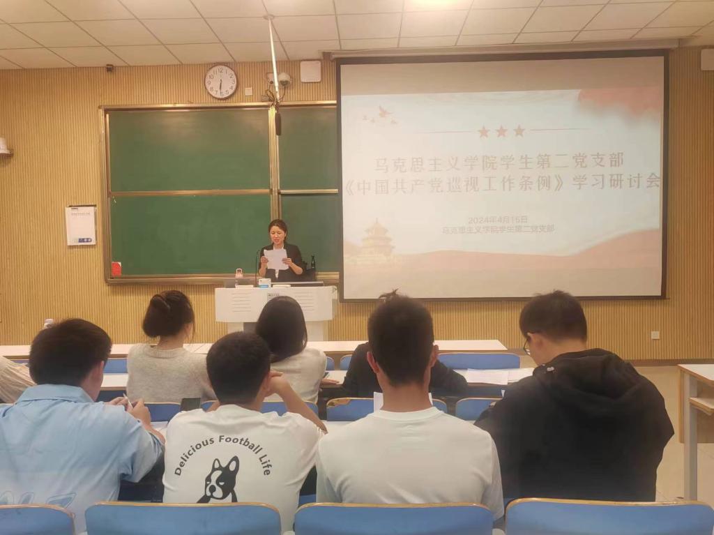 为贯彻落实2024年2月新修订的《中国共产党巡视工作条例》,推动全面从严治党向纵深发展。4月15日晚上,beat365在线唯一官网学生第二党支部在社科楼515教室召开《中国共产党巡视工作条例》学习研讨会。学生第二党支部书记任婷、支部全体正式党员、预备党员共同参与会议。会议由任婷同志主持。