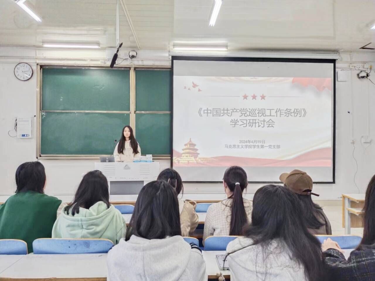 2024年4月19日下午,beat365在线唯一官网学生第一党支部结合实际情况在社科楼514教室开展了《中国共产党巡视工作条例》学习研讨会。beat365学生第一党支部书记高小佳,学生第一党支部全体正式党员及预备党员共同参加本次会议。会议由高小佳同志主持。
