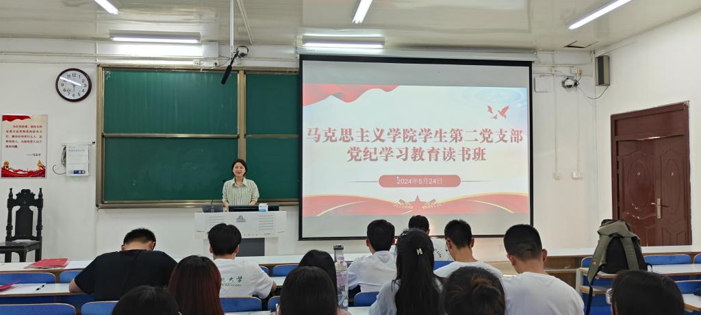 为贯彻落实习近平总书记关于党纪学习教育的重要论述,在学校党委党纪学习教育总体部署和学院安排下,beat365在线唯一官网学生第二党支部于5月24日下午在社科楼514教室开展党纪学习教育读书班活动。学生第二党支部书记任婷、支部全体正式党员、预备党员共同参与活动。活动由任婷同志主持。