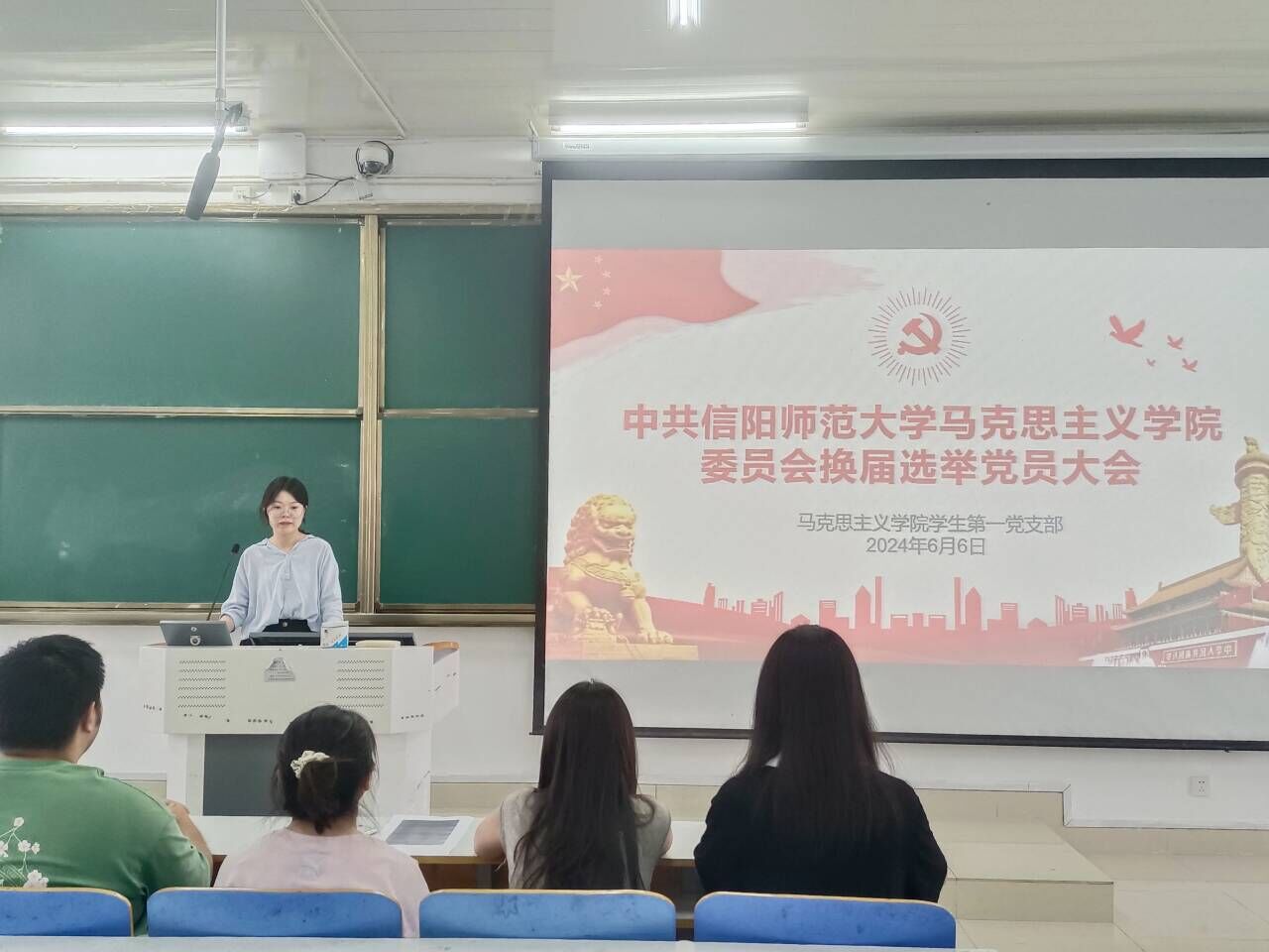 2024年6月6日上午,beat365在线唯一官网学生第一党支部委员会换届选举大会在社科楼514教室顺利召开。支部全体正式党员及预备党员参会。此次会议由党支部书记高小佳同志主持。