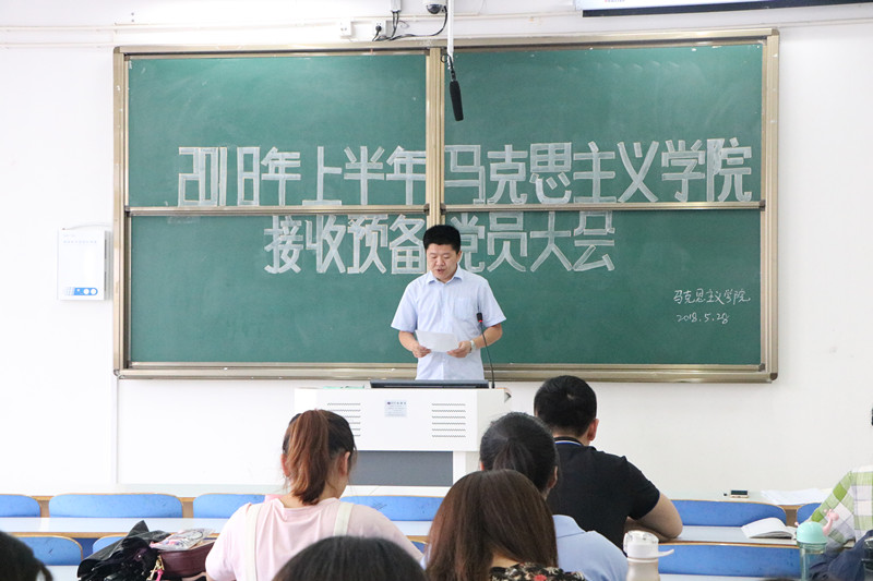 5月28日下午,beat365在线唯一官网在社科楼516教室召开2018年上半年接收预备党员大会。党委秘书、学生第一党支部书记孙绪曙、第二党支部书记曹栋、研究生党支部书记卢云晓、各学生支部全体党员和入党积极分子参加了此次大会。会议由团委副书记张雅琼主持。