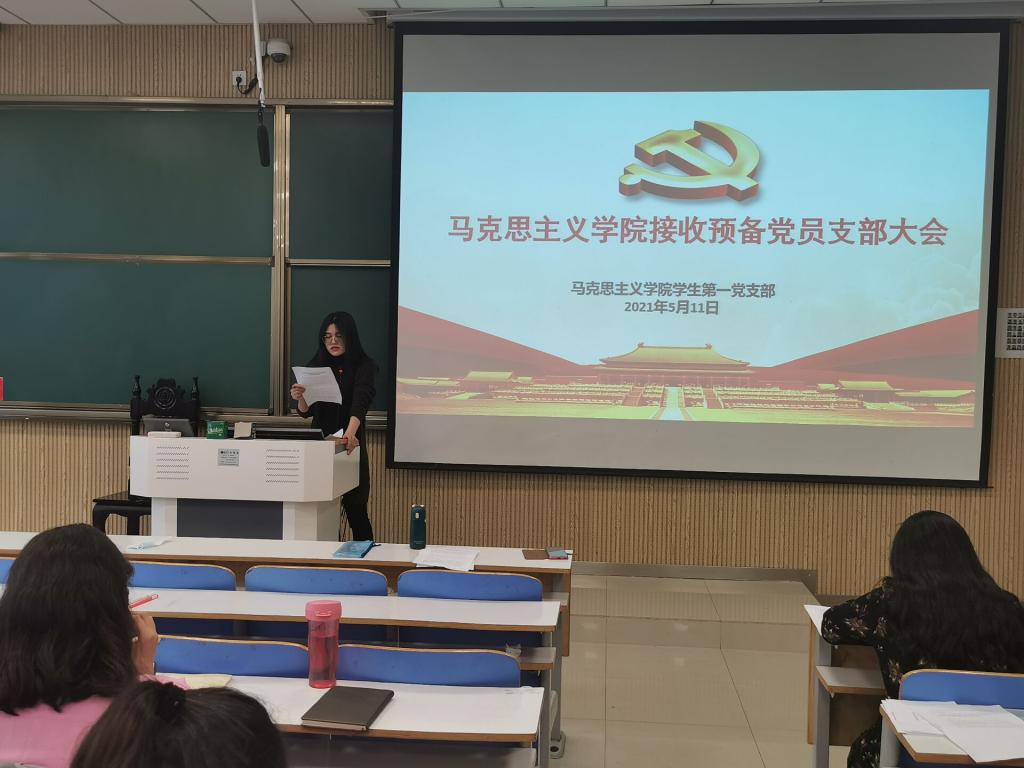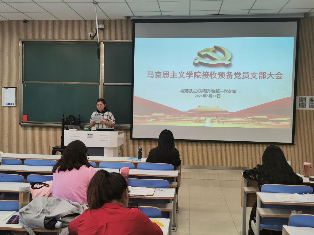 5月11日下午,beat365在线唯一官网学生第一党支部在社科楼515教室召开接收预备党员支部大会。beat365学生第一党支部支部书记杨青青,学生第一党支部正式党员、预备党员和党员发展对象共同参加本次会议。会议由贾子漪主持。