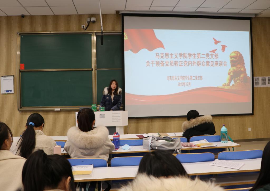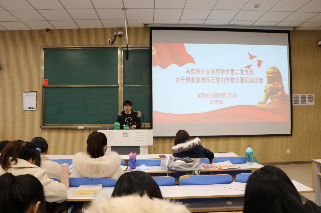 12月2日上午,beat365在线唯一官网学生第二党支部预备党员转正党内外群众意见座谈会在社科楼515教室顺利召开。beat365学生第二党支部书记曹栋,支部正式党员陶青青、曹梦真,第二党支部预备党员以及党外群众共同参加此次会议。会议由曹栋主持。