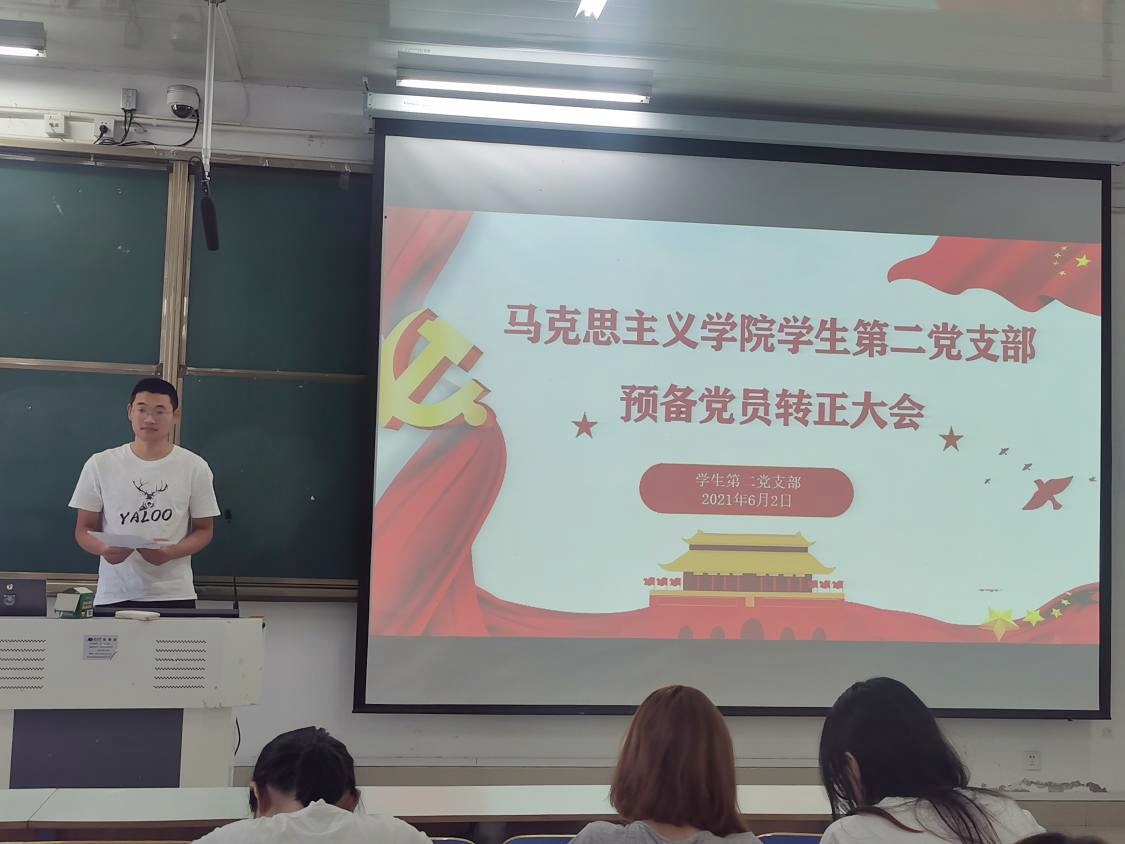 2021年6月2日上午,beat365在线唯一官网2021年上半年学生第二党支部预备党员转正大会在社科楼516教室召开。学生第二党支部书记曹梦真,支部全体正式党员和预备党员共31人参加了此次会议。会议由杨康主持。