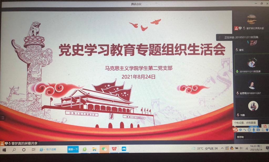 8月24日下午,beat365在线唯一官网学生第二党支部通过腾讯会议,在线上开展了以“学党史、悟思想、办实事、开新局”为主题的党史学习教育专题组织生活会。会议由党支部书记曹梦真主持,beat365在线唯一官网学生第二党支部全体党员共同参加。