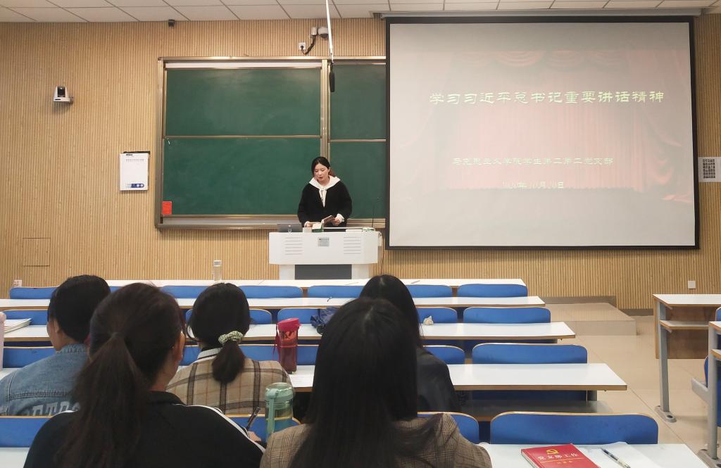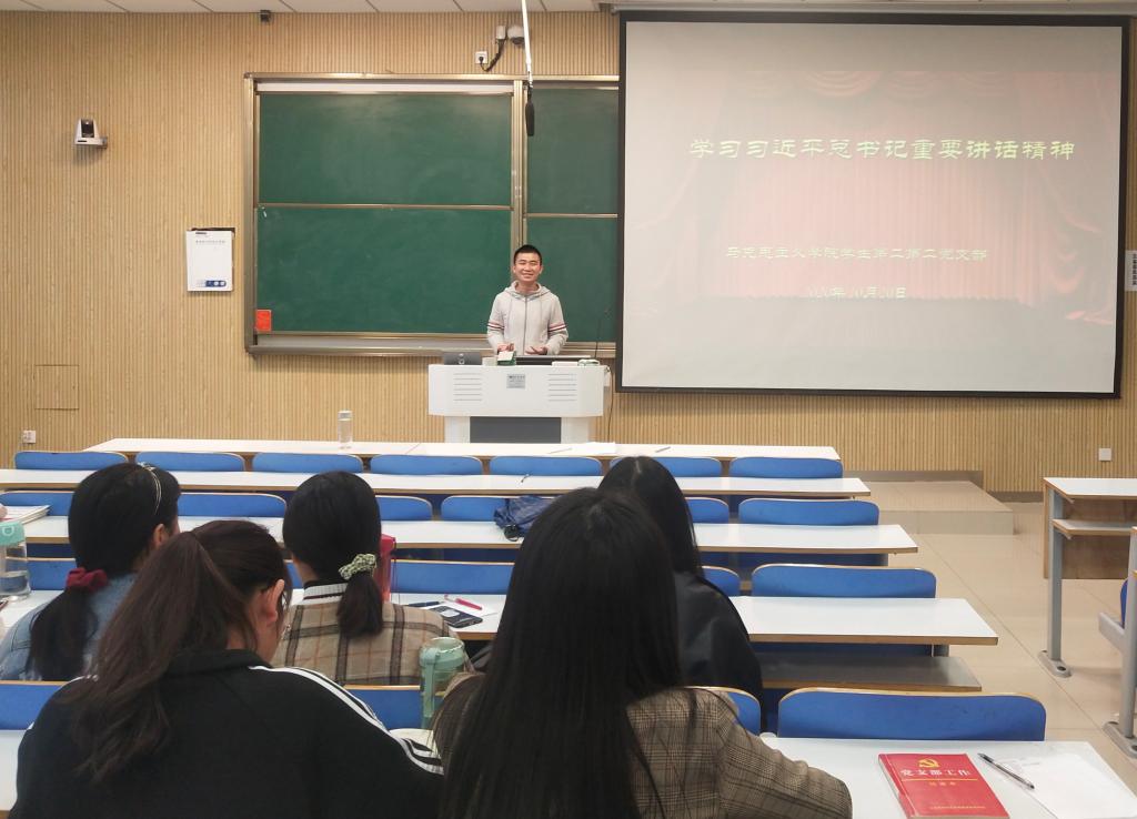 10月20日下午,beat365在线唯一官网学生第二党支部在社科楼515教室顺利开展“学习习近平总书记重要讲话精神”主题党日活动。学生第二党支部全体成员共同参加了此次会议。会议由艾子元主持。