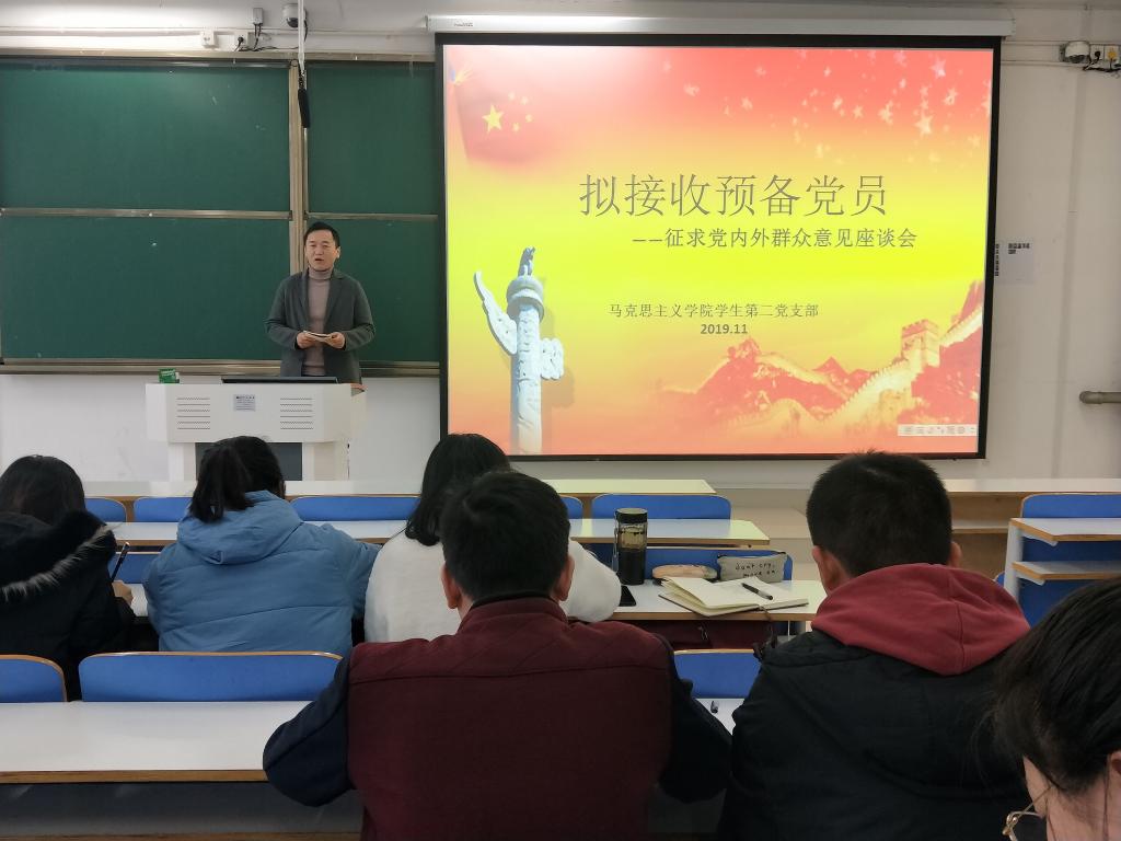 11月25日,beat365学生第二党支部在社科楼516教室召开征求党内外群众意见座谈会。学生第二党支部预备党员、发展对象和部分群众参加了此次会议。本次会议由支部书记曹栋主持。