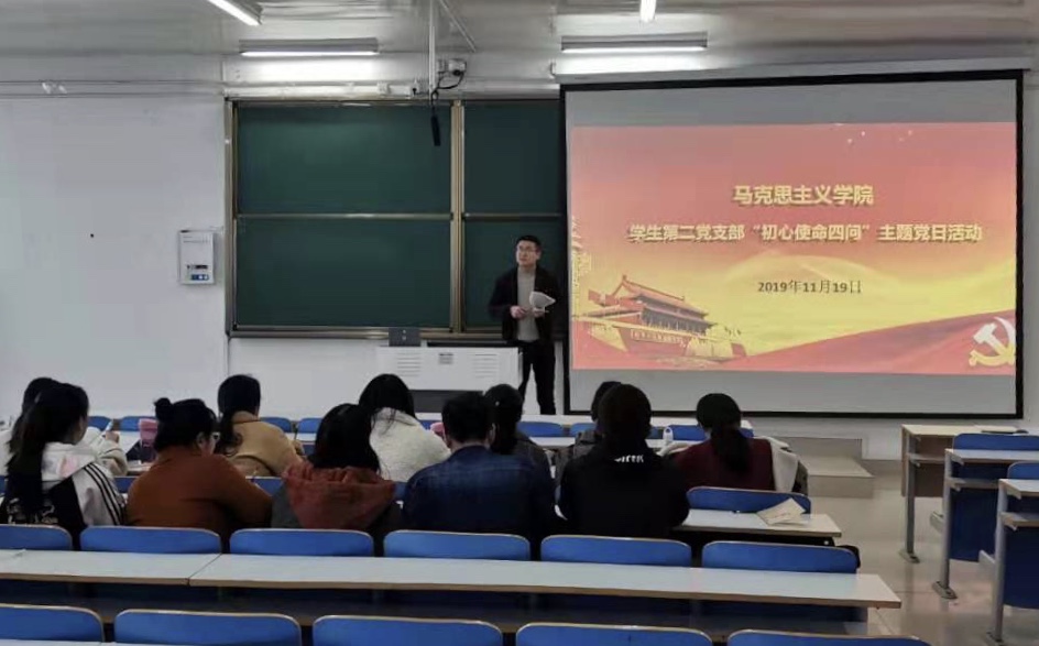 11月19日,beat365学生第二党支部在社科楼514教室召开“初心使命四问”主题党日活动。beat365学生第二党支部组织委员杨胜利、预备党员以及党员发展对象参加本活动。活动由杨胜利主持。
