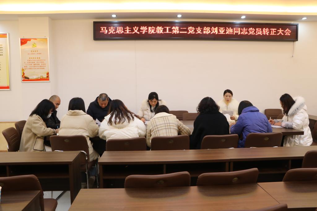 12月15日下午,beat365在线唯一官网教工第二党支部在社科楼323会议室召开入党转正大会。教工第二党支部支部书记胡春湘、正式党员王帆宇、徐化影、张朝霞、陈雷、曾帝、胡春湘、黄世明、叶长红、王建礼,预备党员刘亚迪共同参加本次会议。会议由胡春湘主持。