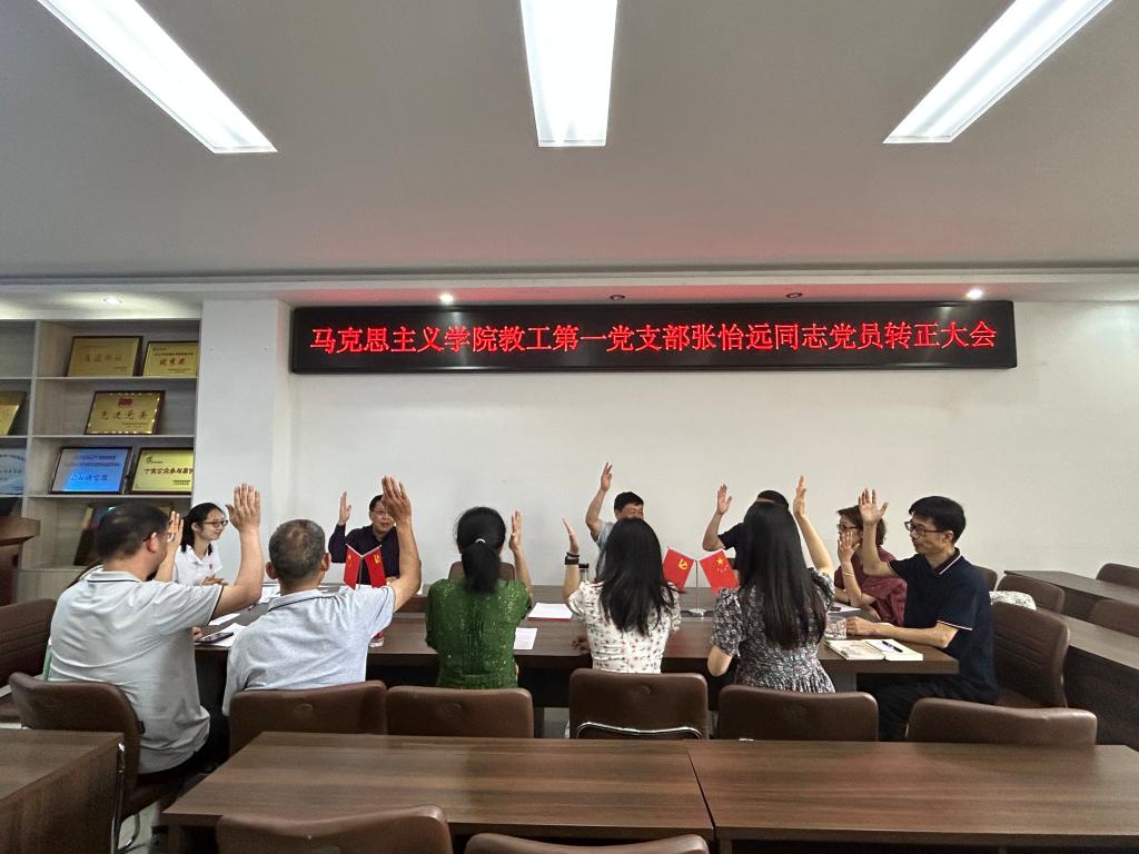 6月1日下午,beat365在线唯一官网教工第一党支部在社科楼323会议室召开入党转正大会。会议由教工第一党支部书记陈杰主持。