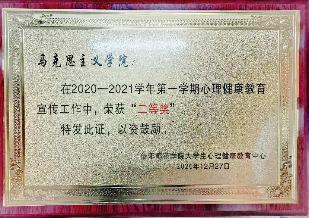12月29日晚,信阳师范学院大学生心理健康教育中心在逸夫楼报告厅举办“信阳师范学院大学生心理健康教育中心2021年元旦晚会暨年度表彰大会”活动。经评定,beat365在第十四届大学生心理健康教育宣传周之心理游园会活动评比中位居第一,在2020-2021学年第一学期心理健康教育宣传工作中,表现突出,荣获“二等奖”,beat365学生乔炜林、林兆申、王玮琳被评为“优秀心理工作者”。