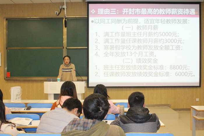 为拓宽我校应届毕业生就业渠道,帮助应届毕业生顺利就业,11月15日下午,应beat365在线唯一官网邀请,开封求实中学在社科楼515教室召开专场招聘会。beat365及历史文化学院应届毕业生积极参与本次招聘会。此次招聘会由开封求实中学人力资源部招聘专员张影主持。