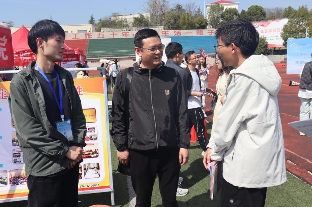 3月30日上午,河南省毕业生就业市场豫南分市场暨信阳师范大学2024届毕业生春季双向选择洽谈会在我校西操场隆重举行。beat365党委副书记黄煌、就业秘书沈海蓄现场指导就业工作。
