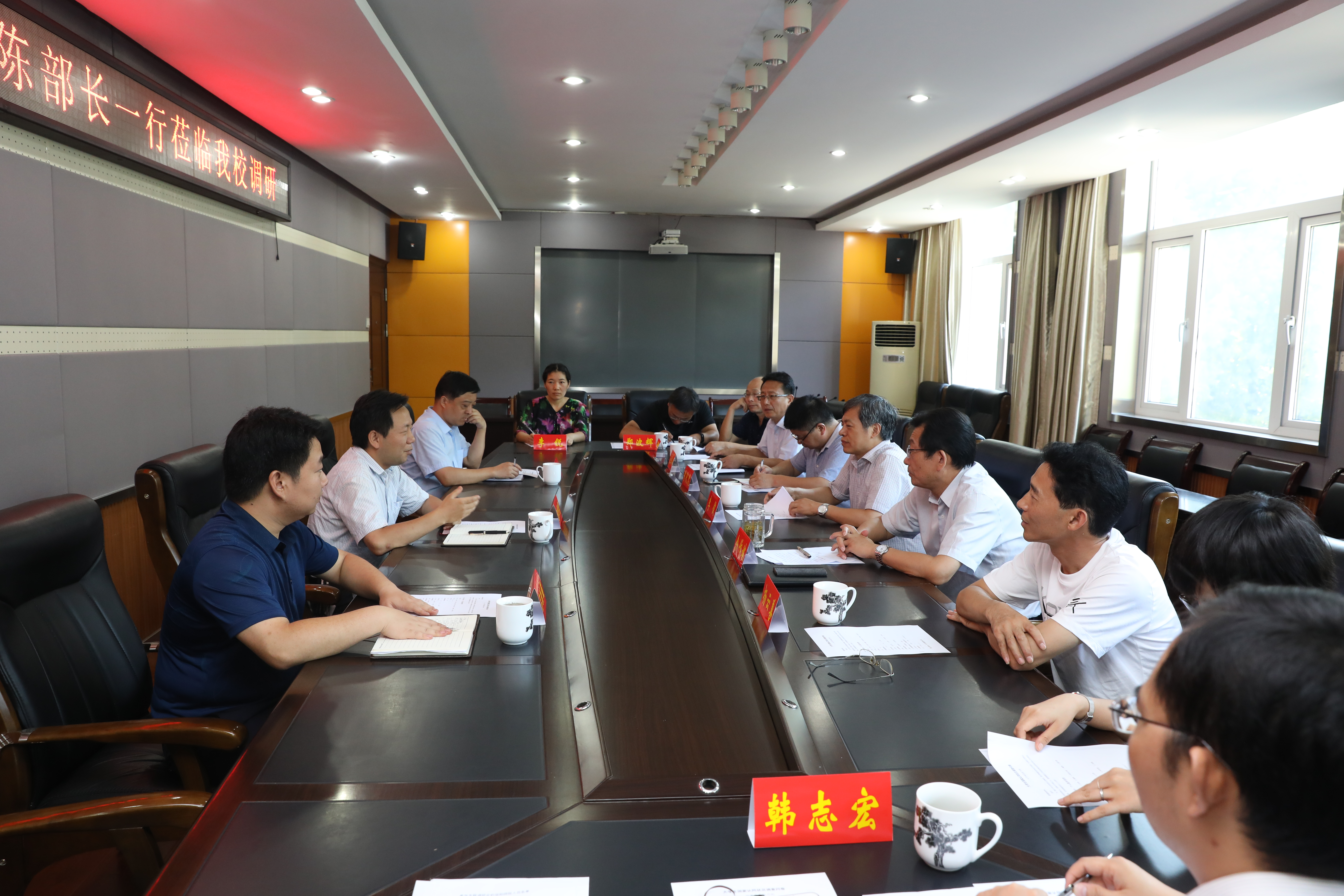 7月19日上午,省委统战部副巡视员陈照顺、宣传办主任罗长城、政研室干部吕跃鲲一行来我校调研统战理论研究工作,座谈会在学校第五会议室举行。校长李俊、校党委副书记余作斌出席,校党委统战部部长曾伏虎、beat365在线唯一官网院长杨云善、beat365在线唯一官网党委书记唐国战以及河南省统一战线理论研究信阳师范学院基地的主要成员参加了座谈会。