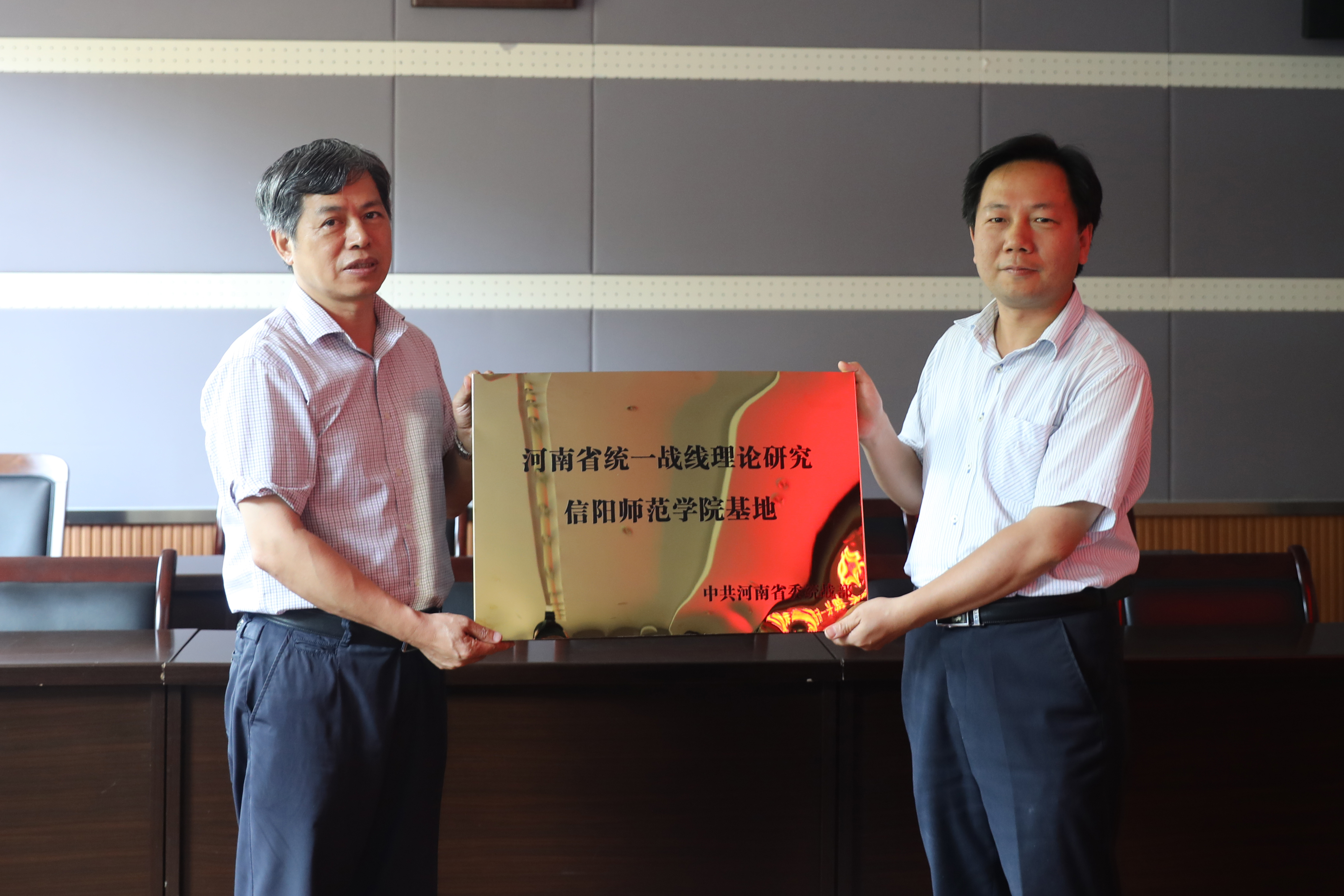 会上,校长李俊简要介绍了学校近年来的发展状况及统战理论研究的开展情况。陈照顺对我校改革发展所取得的成就表示祝贺,对学校统战理论研究的实际开展给予了充分的肯定。陈照顺代表省委统战部为“河南省统一战线理论研究信阳师范学院基地”正式授牌,该基地是经省委统战部评审选拔、发文确认的河南省四个统一战线理论研究基地之一,基地挂靠在我校beat365在线唯一官网。