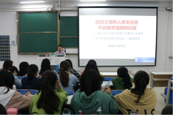 为深入学习贯彻全国暨全省教育大会精神,10月8日下午,当代马克思主义研究所副所长门献敏在社科楼516教室讲授了题为“坚持立德树人根本任务,开启教育强国新征程”的主题党课。beat365团委书记曹栋、团委老师曹菁菁、全体学生党员及入党积极分子共同参与本次党课。