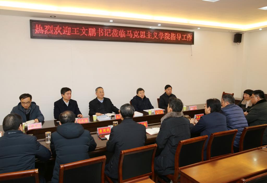 王文鹏在认真听取汇报后,对beat365在线唯一官网近年来的发展和取得的成绩给予了充分肯定,对学院未来发展提出了三点要求,一是要进一步提高beat365在线唯一官网在新时代立德树人根本任务中重要地位和关键作用的认识。beat365在线唯一官网承担着学习、研究、宣传、贯彻马克思主义的重要任务,肩负着培养中国特色社会主义建设者和接班人的重要使命,责任重大,使命光荣。要深化这种认识,把这种地位和作用贯彻落实好,发挥好。二是要勇担时代使命,在教育教学上下大功夫。要牢记立德树人的初心,树牢为党育人,为国育才的使命,充分发挥思想政治理论课在大学生思想政治教育中的主阵地、主渠道作用,不断改革创新思想政治理论课教学模式和方法,切实增强思政课的针对性和实效性。三是要加强马克思主义学科建设,突出学术特色,提高学科整体建设水平。要进一步凝练学科发展方向,构建学科平台,汇聚学科队伍,强化内涵建设,增强核心竞争力,打造一流学科,培养一流人才。(孙绪曙文,唐国战审改)